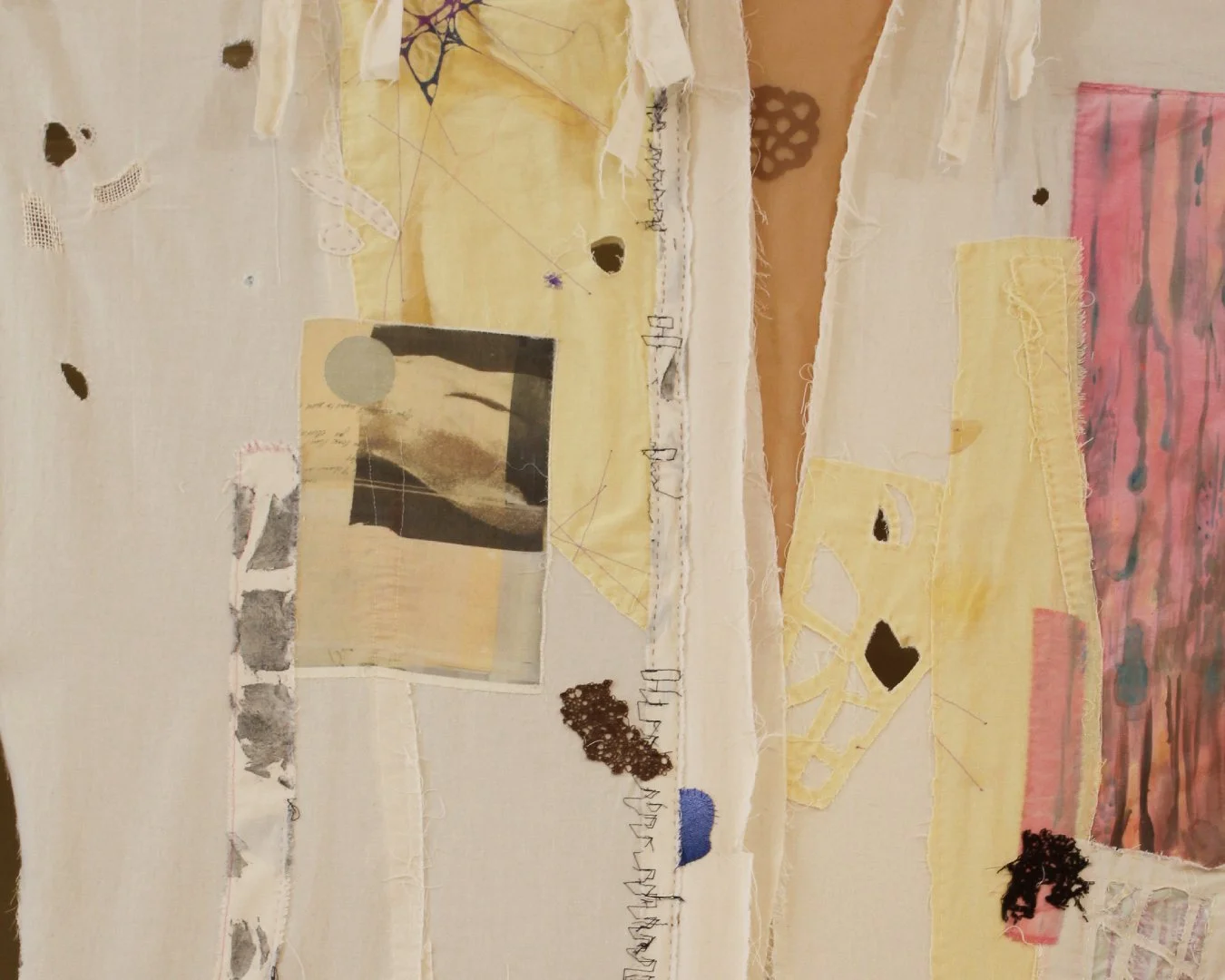 Desenrascanço was an exhibition I led with the collective Melt Club at the Museum Joaquim Correia (Marinha Grande, Portugal, 2023-4). We created a textile installation by applying similar collage techniques to those I use in my own practice - contrasting and blending our contributions. It was a site-specific piece that responded to the history of the city, surroundings and the museum itself, with a focus on its intrinsic relationship with the forest Pinhal de Leiria - which has suffered with destructive fires in recent years.